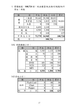 1. 實體館藏:108,724 冊:紙本圖書/紙本期刊/視聽/附件