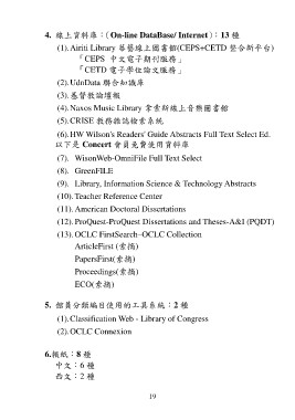 4. 線上資料庫:(On-line DataBase/ Internet):13 種