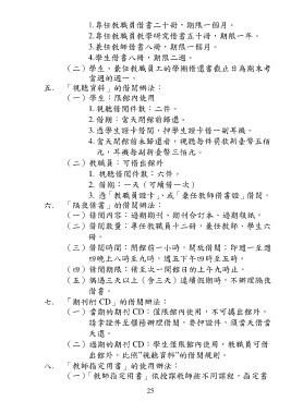 (二)借閱數量:專任教職員十二冊,兼任教師、學生六