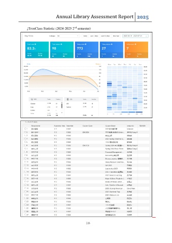 Annual Library Assessment Report 2025 nd ↓TronClass Statistic (2024-2025 2 semester) 116