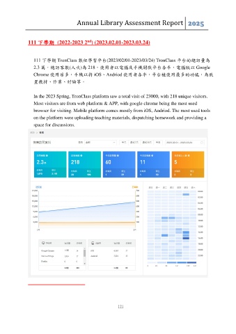 111 下學期 TronClass 數位學習平台(2023/02/01-2023/03/24) TronClass 平台的總訪量為