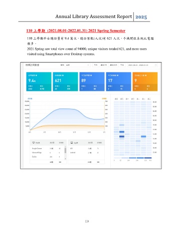 110 上學期平台總訪量有 9.4 萬次,總訪客數(人次)有 621 人次,手機開啟系統比電腦