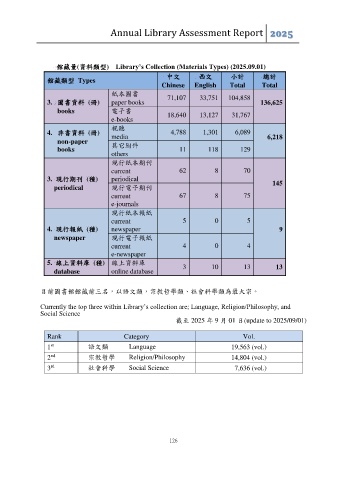 館藏量(資料類型) Library’s Collection (Materials Types) (2025.09.01)