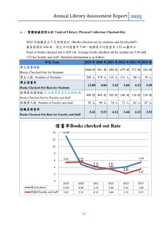 二、 實體館藏借閱分析 Total of Library Physical Collection Checked-Out