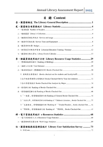 壹、圖書館概述 The Library General Description ...................................... 1