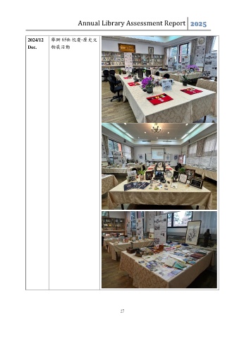 Annual Library Assessment Report 2025 2024/12 舉辦 65th 校慶-歷史文 Dec. 物展活動 27