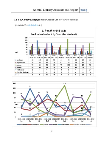 2.各年級每學期學生借閱統計 Books Checked-Out by Year (for students)