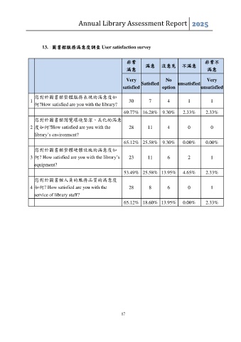 13. 圖書館服務滿意度調查 User satisfaction survey