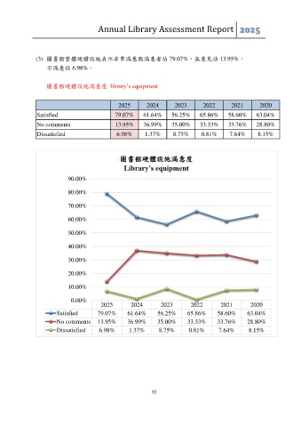 (3) 圖書館整體硬體設施表示非常滿意與滿意者佔 79.07%,無意見佔 13.95%,