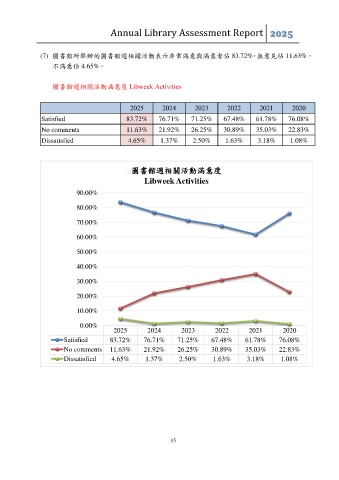 (7) 圖書館所舉辦的圖書館週相關活動表示非常滿意與滿意者佔 83.72%,無意見佔 11.63%,